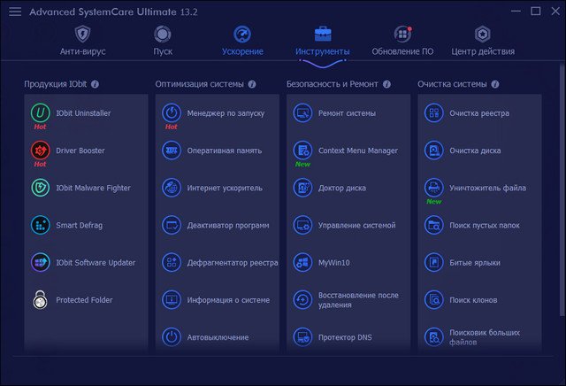 Возможности Advanced SystemCare Ultimate: