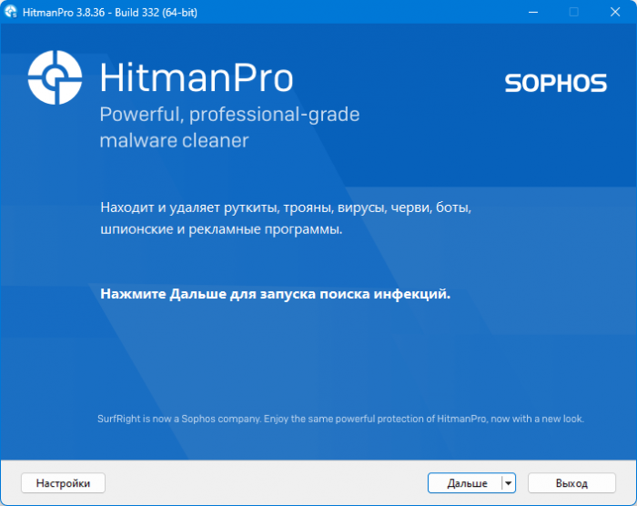 HitmanPro разработан для совместной работы с основным антивирусом. Он использует глубокий поведенческий анализ для поиска и нейтрализации угроз нулевого дня, а также облачную базу SophosLabs для удаления известного вредоносного ПО.