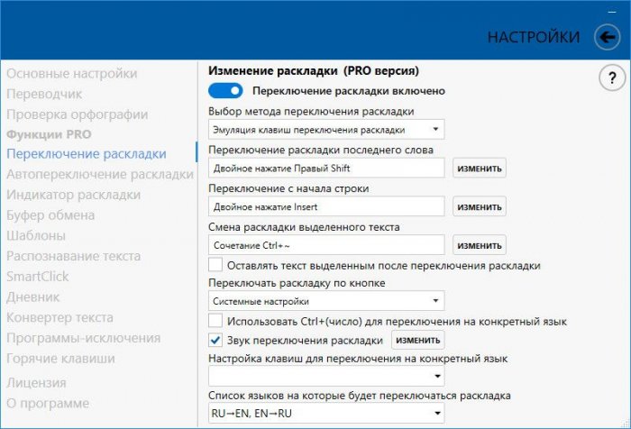 • Автопереключение. Автоматическое переключение раскладки позволит не следить за текущим языком ввода.