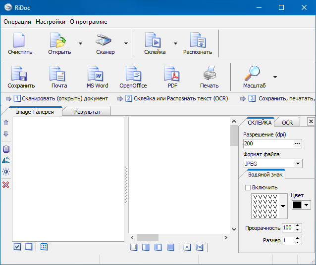 RiDoc - программа для сканирования документов и уменьшения размера графических файлов. Программа позволяет при помощи сканера получать электронные версии документов и производить уменьшение размеров графических файлов без потери информационного качества.