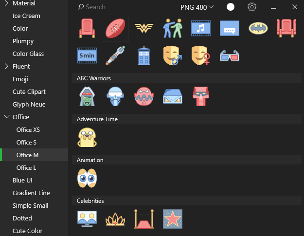 Pichon очень хорошо организован, все иконки размещены по соответствующим категориям, чтобы упростить их поиск. Встроенная функция поиска чрезвычайно быстра, по мере ввода вы увидите, что результаты начинают появляться.