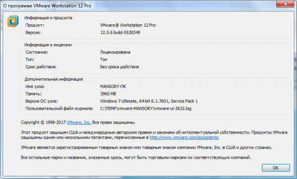 СистемаVMware Workstation Pro 12.5.6 Build 5528349 + Rus