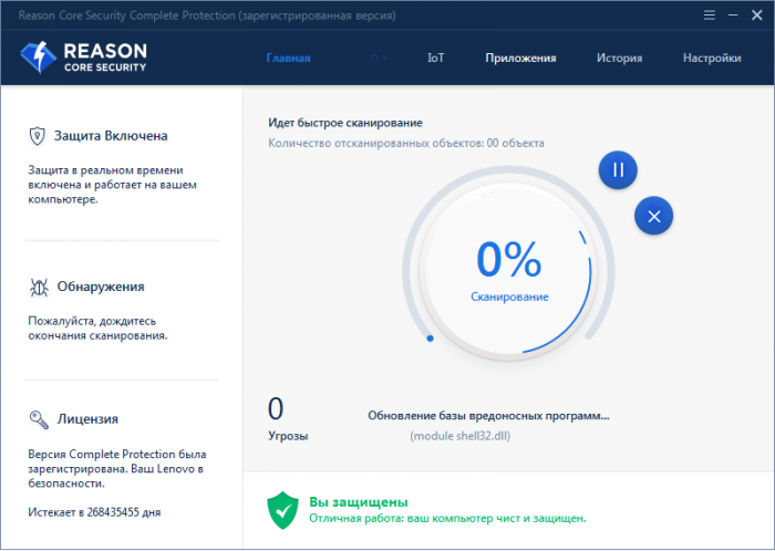 Reason Core Security - облачное решение безопасности. Предлагает защиту в реальном времени от вредоносных программ, ПНП, рекламного и шпионского ПО. Работает совместно с другими антивирусами, обнаруживая пропущенные угрозы.