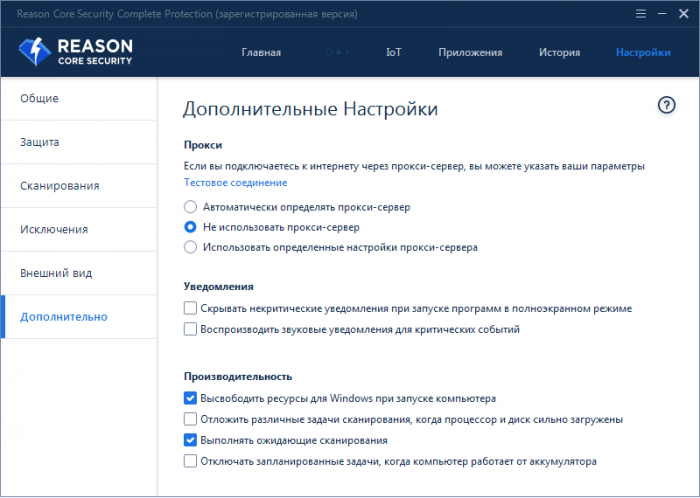 Если на вашем компьютере уже установлена антивирусная программа, Reason Core Security в версии Complete Protection можно использовать в качестве второй линией защиты от угроз, которые может пропустить основной антивирус.