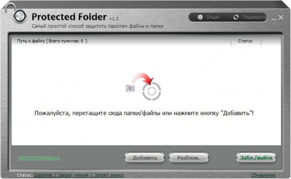 Protected Folder блокирует папки и файлы с доступом по паролю для защиты данных от кражи, утери или утечки. Просто перетащите нужные папки и файлы в «сейф» этой программы, и они будут надежно скрыты от чужих глаз и защищены от внесения изменений. Protected Folder — идеальное средство для тех, кто заботится о безопасности личной жизни и сохранности важных данных.