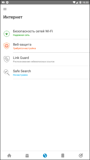 Компоненты PREMIUM версии• Безопасность Wi-Fi помогает сохранять ваше устройство в безопасности при подключении к общедоступной сети Wi-Fi. Компонент безопасность сетей Wi-Fi предупреждает вас, если неизвестная сторона в той же сети следит за вашими действиями в Интернете. Такое поведение известно как атака злоумышленник в середине