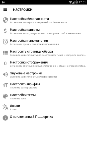 - Полностью настраиваемые категории доходов и расходов для более точного планирования бюджета