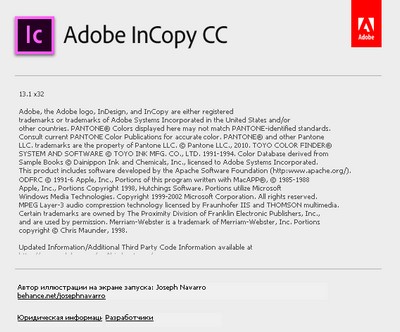 Скачать программу Adobe InCopy CC 2018 v13.1 32bit (500,82 МБ): Вам закрыт доступ к данной инфомарции или блок был удален по требованию правообладателя. Для того, что бы получить доступ, вам необходимо выполнить Авторизацию на сайте Скачать программу Adobe InCopy CC 2018 v13.1 64bit (533,89 МБ): Вам закрыт доступ к данной инфомарции или блок был удален по требованию правообладателя. Для того, что бы получить доступ, вам необходимо выполнить Авторизацию на сайте