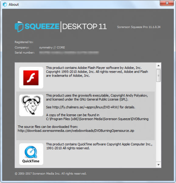 Sorenson Media Squeeze Desktop Pro – мощная программа для кодирования и сжатия видеофайлов. С помощью этой программы, всего за три быстрых шага пользователи смогут выбрать нужные видеофайлы, подготовиться к процессу кодирования и начать сжатие видео в различные форматы, чтобы напрямую из программы опубликовать его в интернете или записать прямо на DVD диск. Программа предлагает Вам лучшие в своем классе производительность, высококачественные аудио и видео кодеки, одновременное кодирование нескольких файлов и пресеты для фильтров оптимизации видео, а также вместе с этим не имеющий себе равных уровень автоматизации процесса кодирования видео. Squeeze не требует у Вас наличия знаний по сжатию видео форматов и предоставляет пользователям быструю работу наряду с высоким качеством в результате окончания процесса кодирования видеофайлов.