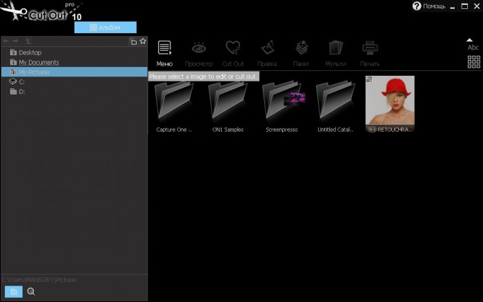 CutOut 10 professional — графический редактор, предназначенный для маскирования и декомпозиции фото или попросту отделения объекта от фона. В программе можно просматривать, сортировать, обрабатывать изображения получаемые с различных цифровых устройств, создавать фотоальбомы, слайд-шоу. А также улучшать качество изображений, добавлять эффекты, надписи, рамки, устранять нежелательные объекты, избавиться от шума, дефектов кожи, эффекта «красных глаз».