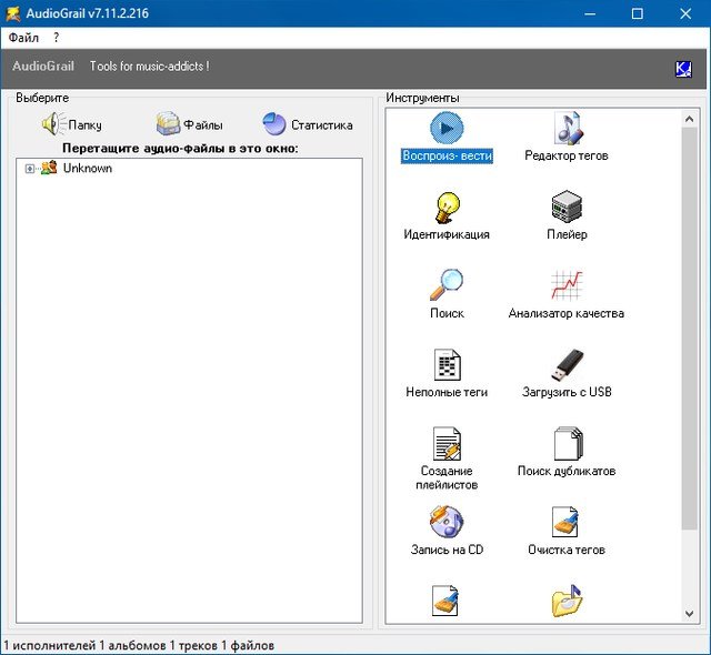 AudioGrail — это сборник утилит для работы с аудио файлами в форматах MP3, OGG, MPC, APE, AAC, FLAC, WavPack и другими. С этой программой вы сможете с легкостью переименовывать файлы, редактировать теги, анализировать качество, сортировать файлы, осуществлять нормализацию звука и т.д.