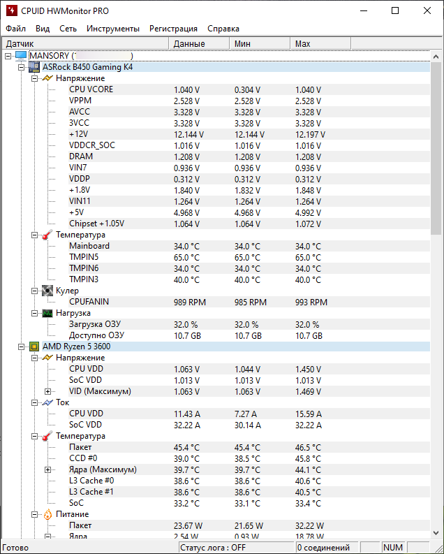 Система ⇒ CPUID HWMonitor Pro 1.55