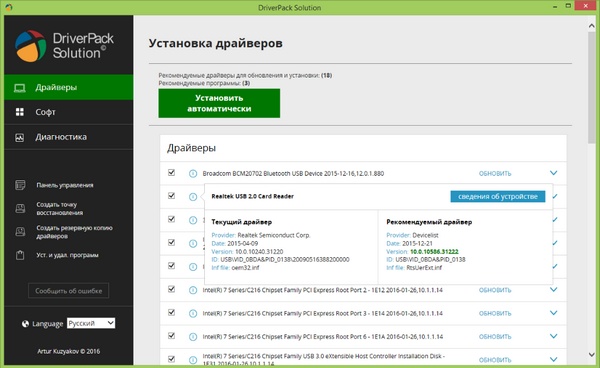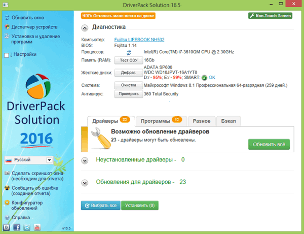 быстрое обновление существующего набора установленных драйверов до более актуальных версий