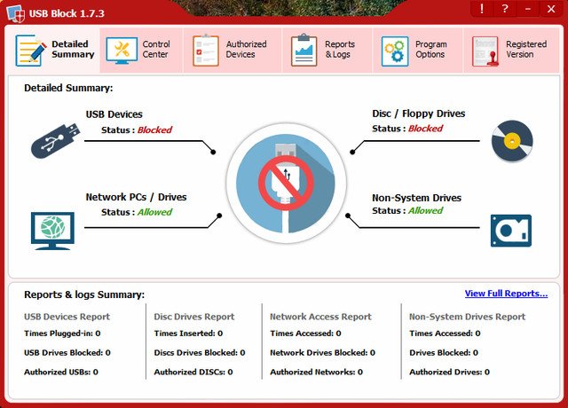 USB Block — небольшая программа, которая поможет заблокировать несанкционированное копирование любых данных с Вашего компьютера на USB накопители, внешние диски, CD/DVD или другие подобные портативные устройства. С помощью USB Block можно легко заблокировать все подобные приводы и устройства, которые не принадлежат вам. Вы также сможете создать список устройств и дисков с авторизацией паролем, которые не будут блокироваться программой.