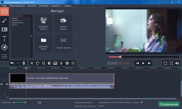 Быстрая обработка HD-видео: при загрузке “тяжелого” видео в Movavi Video Editor программа создает специальный видеофайл с меньшим, чем у исходного, разрешением