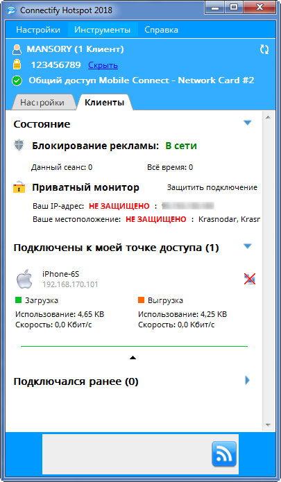 • Блокирование рекламы для клиентских устройств. Connectify Hotspot 2018 включает абсолютно новый блокировщик рекламы, которые предотвращает показ раздражающей и нежелательной рекламы на устройствах, подключающихся к вашей точке доступа!