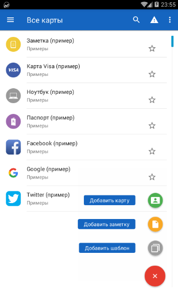 ПРИЛОЖЕНИЕ ДЛЯ ANDROID WEARВы можете поместить выбранные карты на запястье, чтобы быстро получать доступ к ним на ходу. Это могут быть PIN-коды ваших кредитных карт, коды дверей и замков.