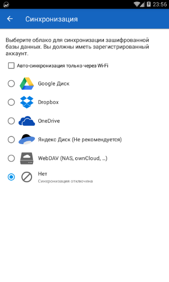 СИНХРОНИЗАЦИЯ С ОБЛАКОМВаша база данных автоматически синхронизируется с вашим собственным аккаунтом в облаке (Google Drive, Dropbox, OneDrive, Yandex Disk, NAS, ownCloud, WebDAV). Вы можете легко восстановить всю базу данных из облака на новый компьютер или телефон (в случае потери или обновления). Телефон, планшет и компьютер также автоматически синхронизируются друг с другом через облако.
