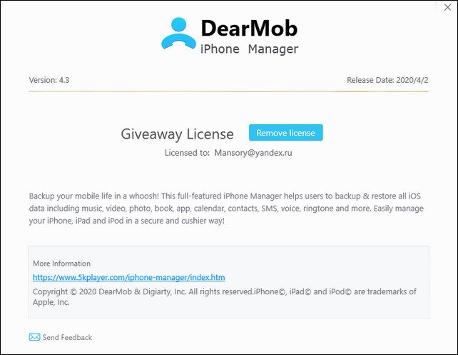 Скачать программу DearMob iPhone Manager 4.3 (48,5 МБ):