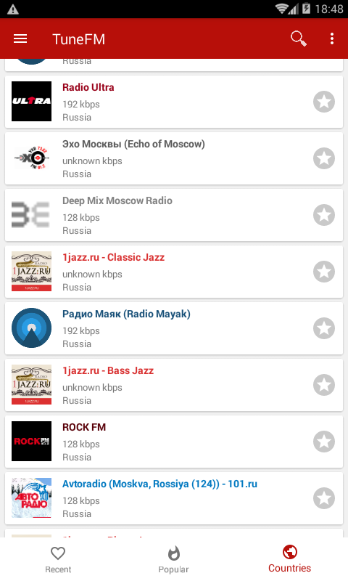 TuneFM - лучший способ слушать радиостанции со всего мира! Вы можете найти все станции из своей и других стран. Есть более 30 000 радиостанций. Вы можете отсортировать их по популярности или по имени.