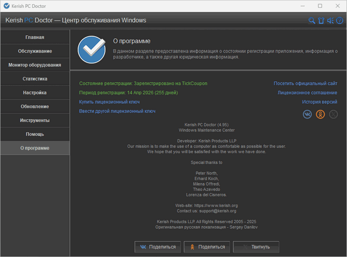 Скачать программу Kerish Doctor 4.95 от dimo70 (62,39 МБ):
