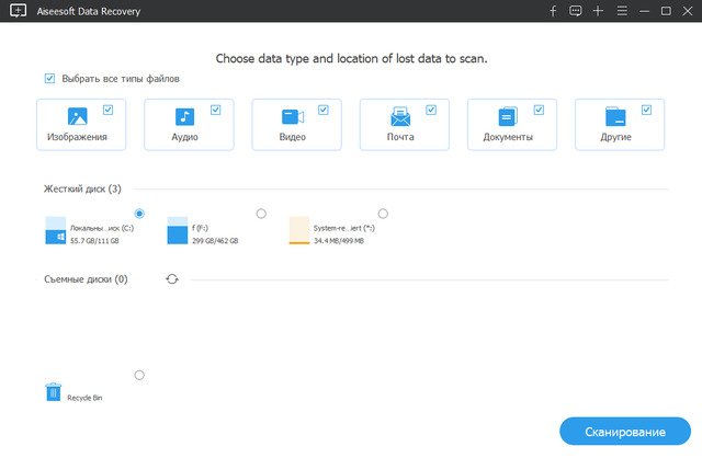 - Восстановимые данные. Aiseesoft Data Recovery может помочь вам восстановить любой тип данных, например, изображение, документ, аудио, видео, электронную почту и многое другое.
