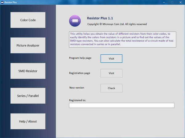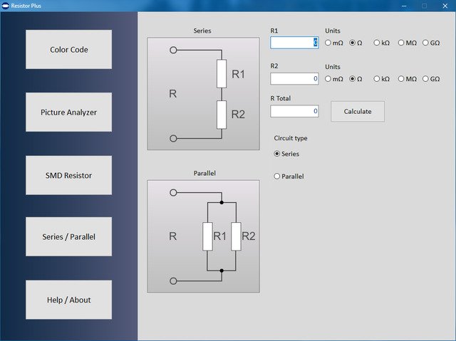 Resistor Plus поможет вам узнать значение резистора в соответствии с его цветовым кодом, сгенерировать цветовой код для определенного значения сопротивления и правильно определить цвета, которые вы можете найти в загруженном изображении. Он также касается кодов, записанных на резисторах типа SMD в разных стандартах, и вычисляет результирующее значение двух резисторов, соединенных последовательно или параллельно. Для каждой из этих операций выделены отдельные страницы, которые могут быть выбраны с помощью больших кнопок с левой стороны окна программы. Первые две страницы управляются с помощью мыши, а третья и четвертая страницы могут управляться либо с помощью мыши, либо с клавиатуры. Простой и эргономичный дизайн, с большими шрифтами и большими кнопками, интуитивно понятный интерфейс - лишь некоторые из этих преимуществ программы. Программный код был оптимизирован для новейших версий Windows.