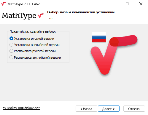 Скачать программу MathType 7.11.1.462 (30,68 МБ): Скачать программу MathType 7.4.4516 (20,69 МБ):