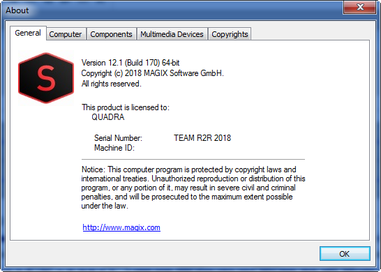 Скачать программу MAGIX Sound Forge Pro Suite 12.1.0.170 - x86 (236,9 МБ): Скачать программу MAGIX Sound Forge Pro Suite 12.1.0.170 - x64 (307,9 МБ):