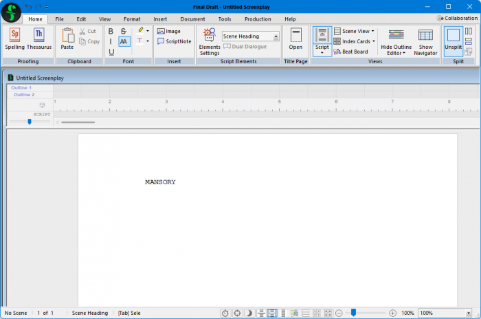 Эта программа широко используется Голливудскими сценаристами, в числе которых Том Хэнкс, Оливер Стоун и Джеймс Камерон. Среди основных возможностей программы: проверка орфографии (английского и других европейских языков), отметка сцен цветом и названиями для быстрого нахождения нужной сцены, легкая и быстрая подсветка выделенного текста различными цветами, автоматическое сохранение и многие другие возможности.