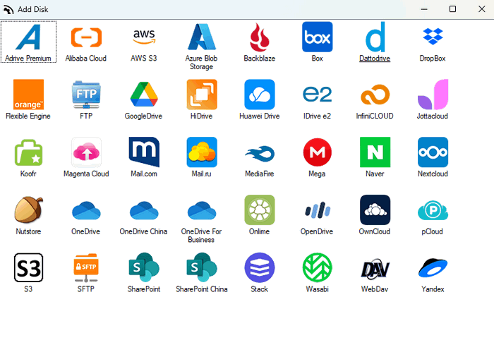 Поддерживается несколько облаковAir Live Drive работает с самыми важными облаками и может добавлять несколько учетных записей из одного облака. Каждая учетная запись становится диском на вашем компьютере.