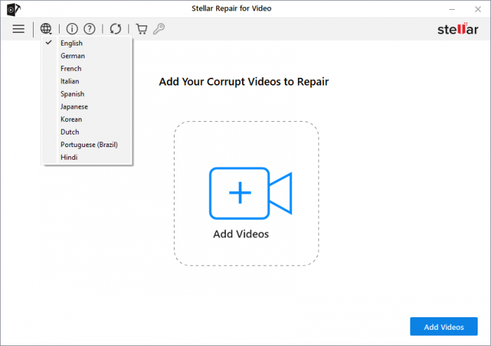 Простой в использовании интерфейсStellar Repair for Video предлагает интуитивно понятный и удобный интерфейс для пользователей. Благодаря своей интерактивной функциональности вы не нуждаетесь ни в каких технических специалистах для ремонта ваших поврежденных видеофайлов. Он предлагает быстрый ремонт видео благодаря легкому графическому интерфейсу, всего за несколько кликов.