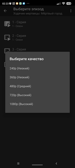 • Возможность выбора качества 240р, 360р, 480р, 720р, 1080р (1440р, 2160р для Filmix PRO+), если имеется.