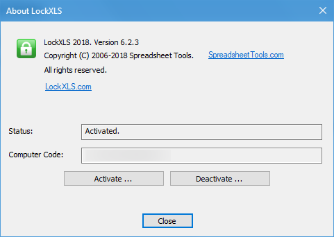 LockXLS - новое решение безопасности для Microsoft Excel. Оно защищает ваши документы от несанкционированного копирования, анализа их работы и перепроектирования различными способами с шифрованием 128 bit: паролем доступа, ограниченным (trial) периодом пользования, привязкой к «железу» конкретного PC, кодом активации, увязанным с флешкой (USB Flash Drive) и серийным номером с окном Соглашения.