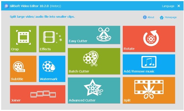 GiliSoft Video Editor - это очень мощная и удобная в работе программа для быстрого редактирования видео наиболее распространённых форматов (AVI, MPEG, MPG, MPEG-1, MPEG-2, MPEG-4, WMV, MP4, MOV, VOB, ASF, 3GP, 3G2, SWF, H.264, QT, DAT). При использовании данного программного обеспечения можно быстро вырезать из видео отдельные фрагменты, объединять несколько фрагментов видео в один файл, работать с субтитрами и др. Всё заключено в симпатичную графическую оболочку и каждый вид редактирования можно выбрать независимо от других.