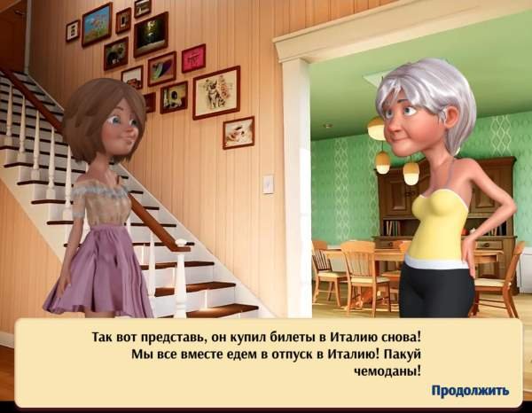 Ваш отец удивил вас и вашу маму отличным подарком на празднование их годовщины свадьбы - отпуском в Италии! Присоединяйтесь к своим родителям в этом увлекательном путешествии. Откройте для себя красоты Италии с ее великолепной архитектурой и работами великих мастеров.