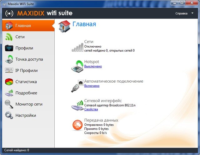 Maxidix Wifi Suite обеспечивает пользователю полный контроль над Wi-Fi-соединениями и беспроводными сетями. Скачай на diakov.net профессиональное приложение для надежного управления беспроводными сетями, просмотра комплексной информации о соединениях и подсчета трафика. Приложение автоматически обнаруживает сети и дает возможность легко управлять ими, а также позволяет настраивать профили.