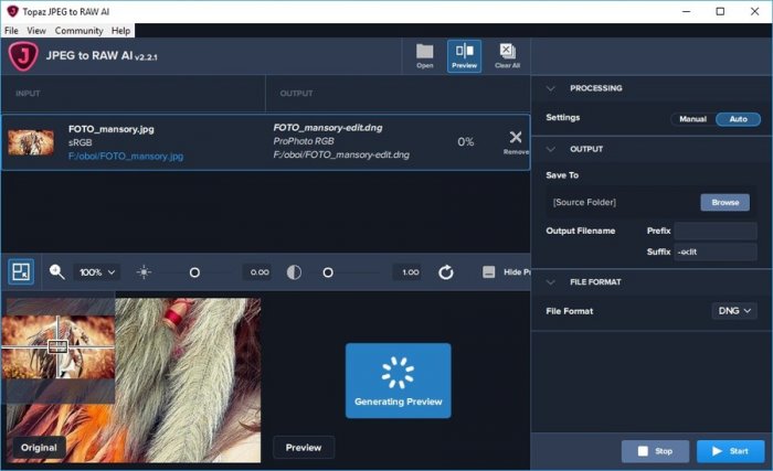 JPEG в RAW AI для получения лучших результатов редактирования. Автономное приложение для Windows, которое позволяет пакетную обработку.