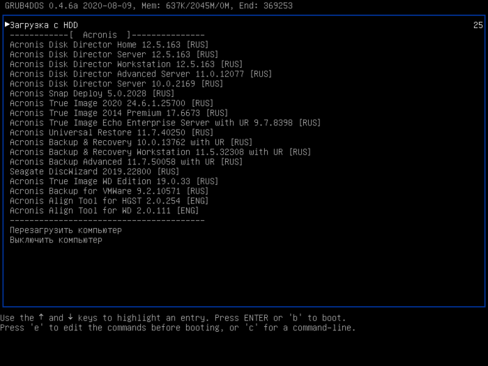Система ⇒ Acronis BootDVD Grub4Dos Edition 13.03.21