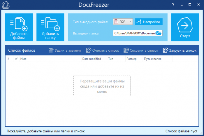 Несомненным плюсом приложения является возможность обрабатывать сразу несколько файлов одновременно - это могут быть и электронные таблицы, и текстовые документы и те же PDF-файлы, при этом не требуется использование сторонних программных продуктов. Благодаря простому интерфейсу с поддержкой технологии Drag-and-drop, каждый пользователь может легко освоить работу с DocuFreezer, добавляя файлы и даже целые папки для конвертации. Все что нужно - определить формат конвертации, указать папку сохранения и запустить процесс.