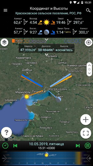 Приложение для продвинутых фотографов, которые любят путешествовать и снимать на природе. Оно позволяет определять естественные источники света в зависимости от местоположения и окружающего ландшафта. Важной особенностью программы является то, что расчет освещения осуществляется для определенных фотокамер и типов светочувствительных сенсоров. Информация о дистанции до объекта съемки и освещении выводится в активное окно, после чего на основании полученных данных фотограф может легко настроить свое фотооборудование. Положение источника света высчитывается не только на горизонтальной плоскости, но и по вертикали, и относительно горизонта.