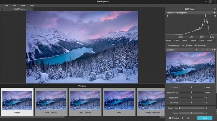 HDR Express – программа предназначенная для создания и обработки HDR-снимков. HDR Express является автономной программой совмещаемой с Adobe Photoshop Lightroom экспортным плагином и содержит простой набор интерактивных инструментов и пресетов. HDR Express работает с точностью 32-битной плавающей точки основанной на технологии цвета Beyond RGB™, автоматически объединяет различные экспозиции в одно HDR изображение. Позволяет регулировать цвет, яркость и контраст, сохраняя при этом полный 32-битный процесс без Tone Mapping. Производит четкие фото-реалистичные HDR изображения без ореолов и изменений цвета.
