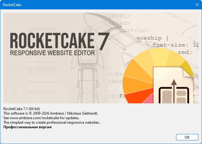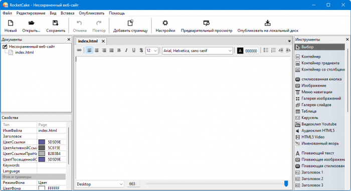 RocketCake — веб-редактор для создания современных сайтов без знания HTML верстки. Программа представляет собой визуальный конструктор, работающий в режиме WYSIWYG. Включает в себя множество инструментов редактирования, поддерживает мультимедийный контент, позволяет создавать адаптивные веб-страницы и многое другое.