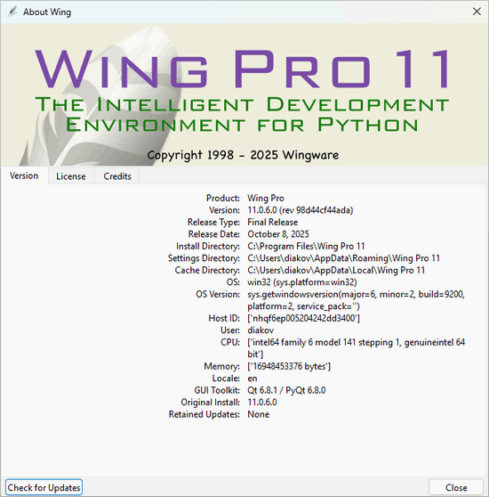 Wing IDE - интегрированная среда разработки, предназначенная для создания приложений на языке Python. IDE предоставляет профессиональный редактор кода, в котором можно использовать клавиатурные комбинации vi и emacs, работает автодополнение кода, рефакторинг, отслеживание вызовов, контекстные подсказки. Доступен графический отладчик кода для локальной и удаленной отладки, интерфейс для контроля версий, система unit -тестирования, гибкий механизм поиска.