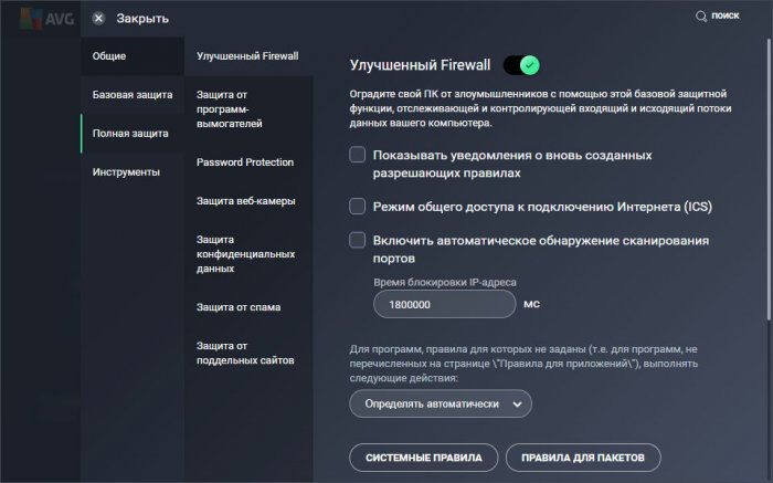 • Усиленный брандмауэр. Защита компьютера от проникновения злоумышленников