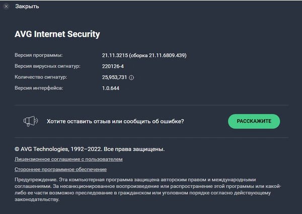 Скачать программу AVG Internet Security 21.11.3215 Final (585,2 МБ):