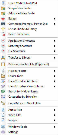 Интеграция контекстного меню Windows (Shell Menu)После установки MSTech Swift Gadget вы получите доступ ко всем функциям программы в контекстном меню Windows.