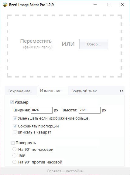 Bzzt! Image Editor может сжимать, вращать, изменять размер и конвертировать изображения в большом объеме из простого интерфейса перетаскивания. Он идеально подходит для мгновенного создания веб-изображений. Простой графический инструмент для изменения размера, преобразования и сжатия коллекций изображений в пакетном режиме всего за несколько кликов.