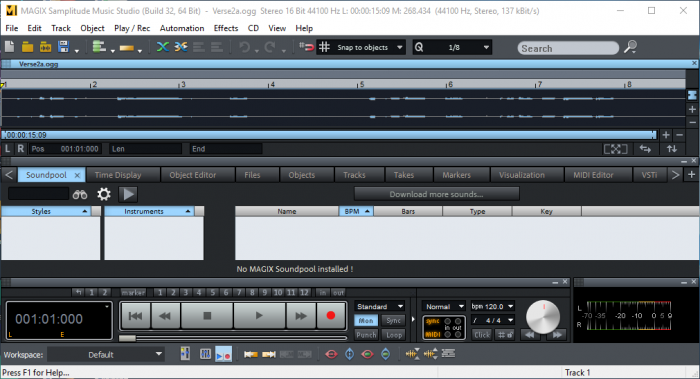 Samplitude Music Studio позволит Вам профессионально создать и запись любую музыку, а также смикшировать композиции и выполнить последующий мастеринг.