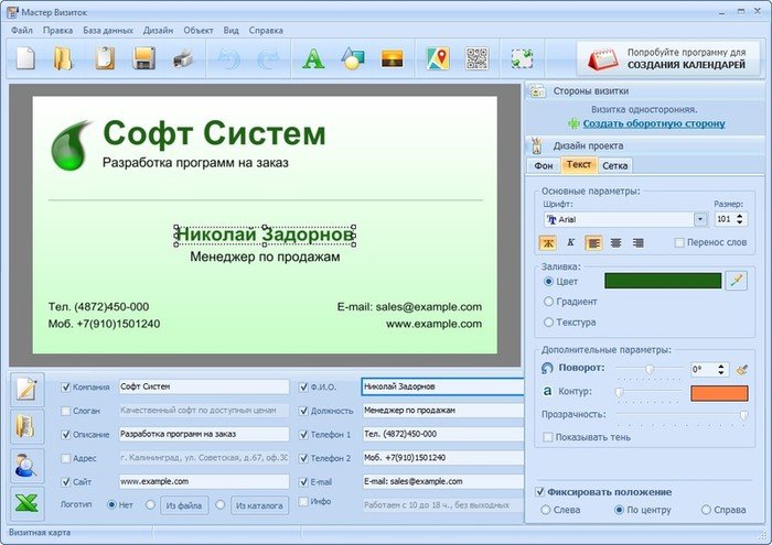 • Возможность создания двухсторонних визитных карт